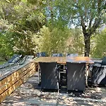 Köksredskap, vattenkokare och kylskåp tillhandahålls också. En säsongsöppen utomhusbassäng finns på plats.